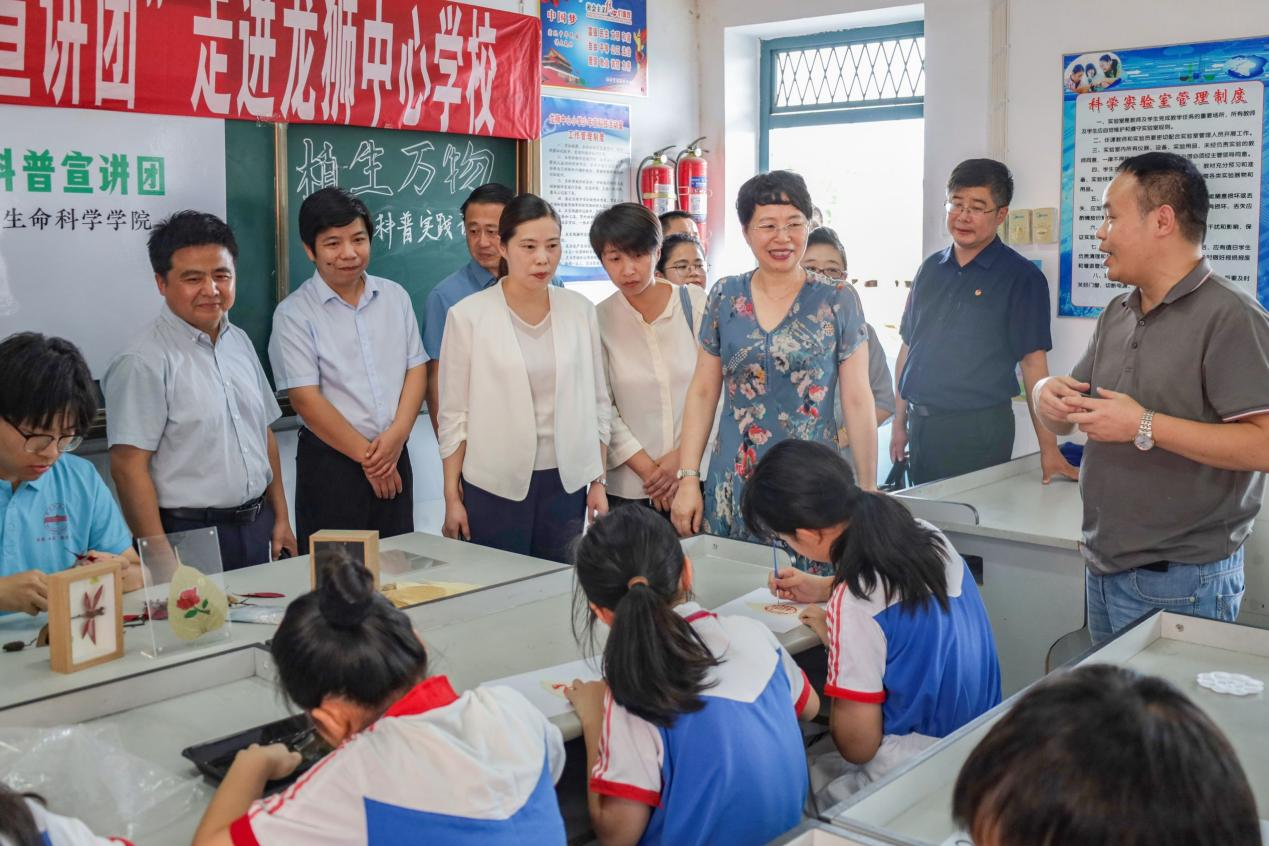 彭凤莲一行参观了2024年度暑期“三下乡”社会实践科普作品展,并走进实践课堂观摩了“植生万物”等特色实践课程教学。她充分肯定了青年员工们积极参与志愿实践、服务基础教育的实干作风,鼓励青年学子唯实求真,在实践锻炼中“磨好一堂课、站稳三尺台”,充分展现师范底色。