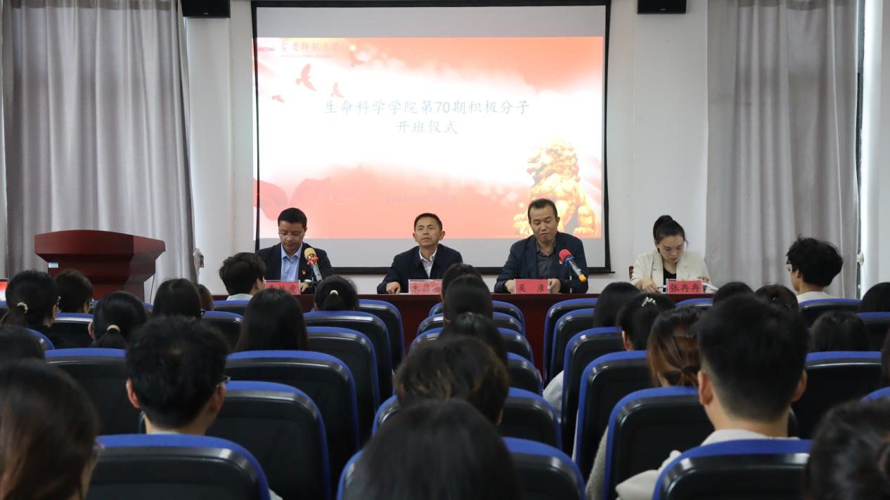 接着,培训班学员代表2023级生物科学专业李孟婷同学作表态发言。她表示,作为新时代的老员工,有机会参加入党积极分子培训班,培感荣幸,无比骄傲。她承诺,在今后的日子里,自己一定会珍惜会这个弥足珍贵的学习机会,认真学习党的先进理论,继承和发扬先辈们的光荣传统,赓续红色血脉,始终以“践行初心 担当使命”为己任,奋力谱写时代华章,为实现中华民族的伟大复兴而不懈奋斗。