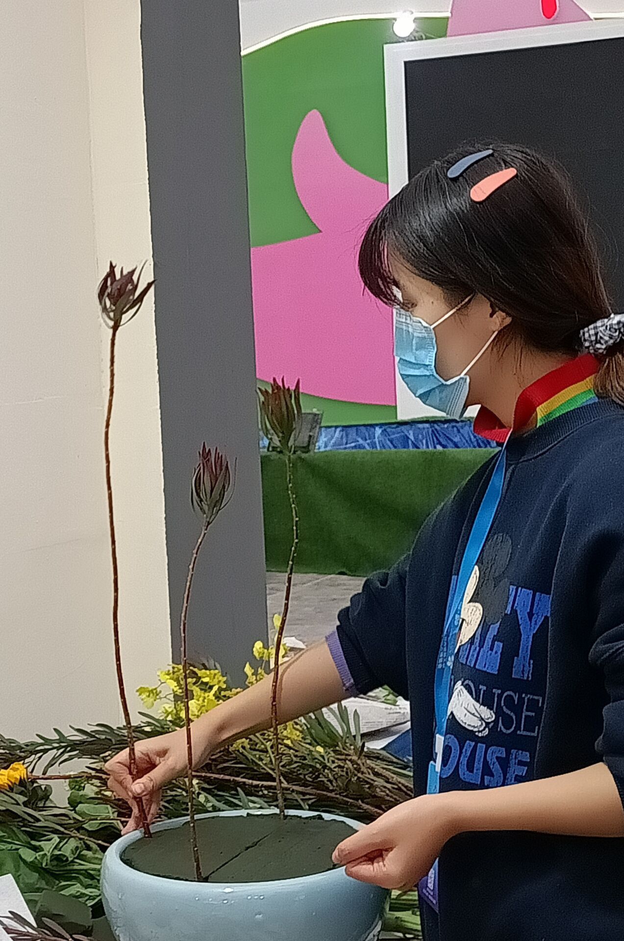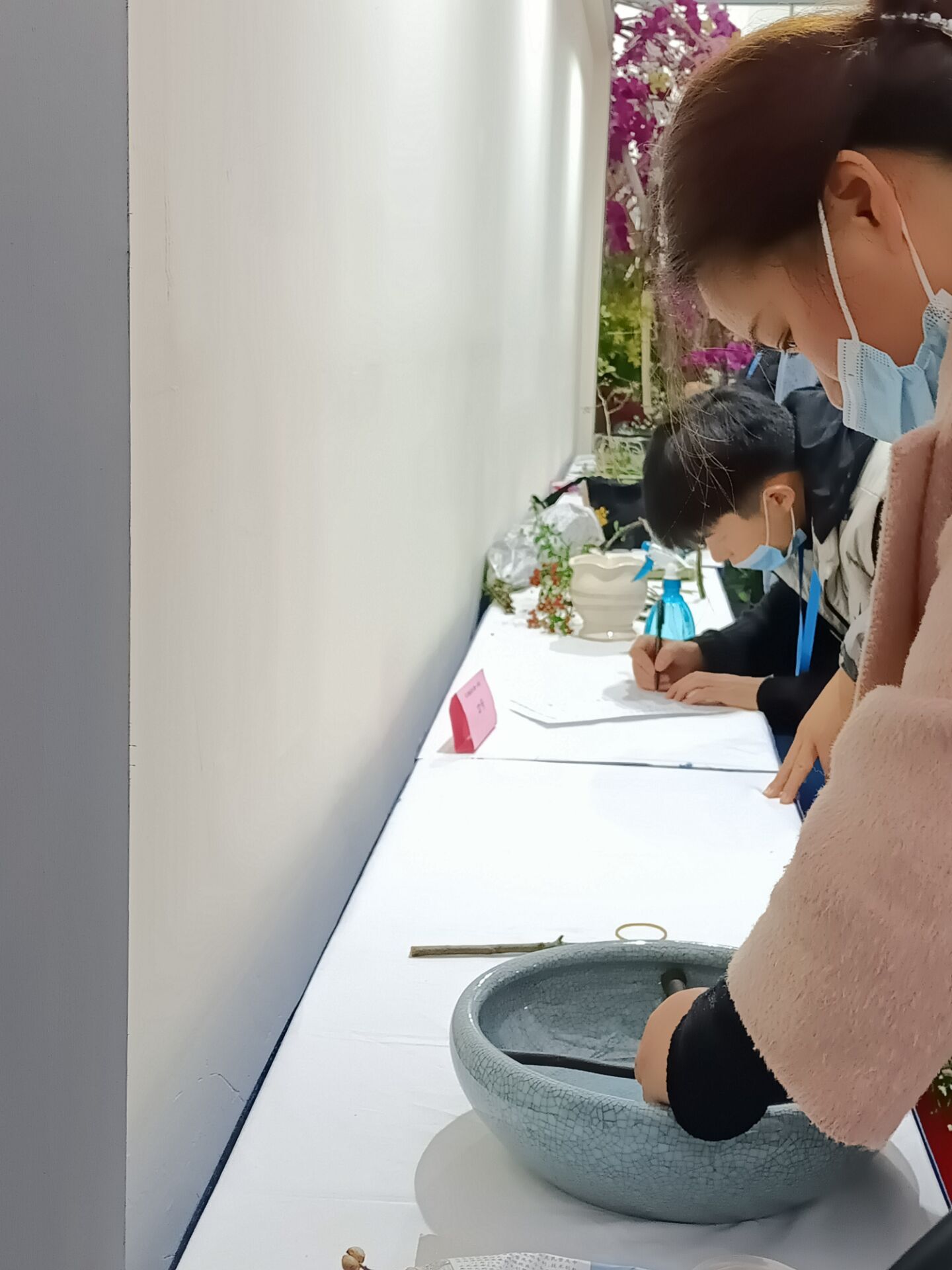 插花大赛为花卉博览会的内容之一,参赛者主要有安徽省各地花友会成员及相关高校优秀插花组。赛前准备,气氛火热,大家精心挑选自己所需的花材,热烈讨论,深入交流。比赛内容为即兴插花,利用现场提供的花材,自我构思主题,插出心中最美的花。经过近两个小时的忙碌,公司师生共完成十余件作品,获得 银奖一枚,优秀奖十枚。其中宗梅老师的《池畔》、张云龙同学的《冬去春来》令花友啧啧赞美,给评委留下了深刻印象。
