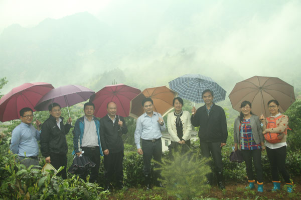 专家组冒雨查看了大别山五针松保护示范基地,对基地建设情况进行了详细的考查。汇报会上,项目主持人吴甘霖教授代表项目组对项目执行情况进行了介绍,汇报内容包括项目执行情况、经费使用情况、组织管理和机制创新经验、存在的问题与建议等五部分。