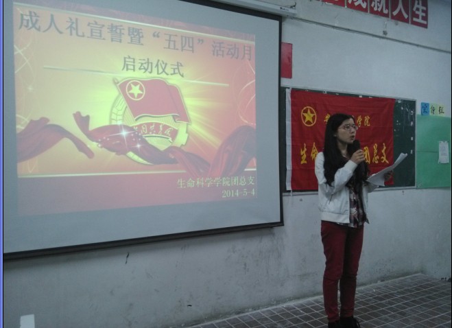 13时30分,仪式正式开始。首先由员工代表12级动检专业刘正奎同学发言,该同学品学兼优,本学年获校级“优秀青年”表彰,他结合自身经历,阐述了当代老员工的使命和责任,以及如何做到爱国,如何完成使命。10级生科专业丁梅同学代表全院同学宣读倡议书,号召青年员工弘扬“五·四”精神,坚定信念,把握时代脉搏;奋发学习,争做时代精英;勇于担当,注重全面发展。生科院田蜜老师作为教师代表做了发言,她提到,九十五年来,“爱国、民主、进步、科学”的“五·四”精神激励着一代又一代有志青年学子为追求进步和发展奋斗不息,今天以成人礼宣誓的方式来纪念“五四”爱国运动,就是告诉广大同学成人意味着责任,独立和自强,希望全院青年员工高擎“五四”精神的火炬,勇担时代责任,发奋自强,开拓创新,秉承安庆师范公司“敬敷示范,勤学笃行”的育人理念,展现生科院老员工昂扬向上的精神风貌,为建设文明校园贡献力量。