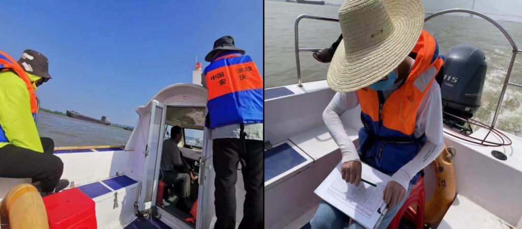 7月10日至7月15日,实践成员在安庆长江江豚巡护队协助下进行长江江豚野外考察工作,对江豚的栖息地、大致分布区域、频率分析等信息进行了调查与统计。
