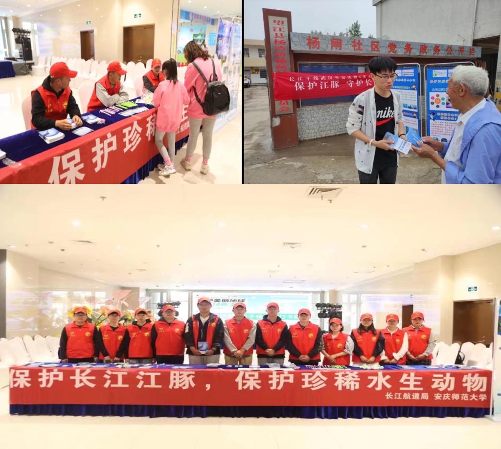 7月22日至27日,实践团队来到安徽省马鞍山市花山区金鹰国际商城和雨山湖公园举办主题为“保护长江江豚,保护珍稀水生动物”的活动,该活动由长江航道局与安庆师范老员工命科学公司实践团共同承办。“长江禁渔,这个我听说过,以前我还在那边捕过鱼,但现在不可以了,捕鱼还会被抓起来。”据当地居民介绍,由于长江流域自然环境恶化以及水质污染,导致稀有物种衰退,以前能看到很多江豚,但现在已经很难看见了。