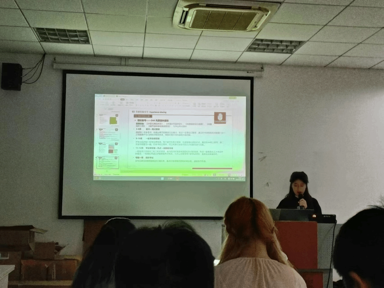 朱艺婷分享了上岸合工大的经历和经验。并分享了有关报考院校的选择、考研所需要的准备和要求、考研资料的搜集、复习计划的制定、考研心态的调节以及复习的战略战术等宝贵经验,并热情解答了现场同学的疑惑。