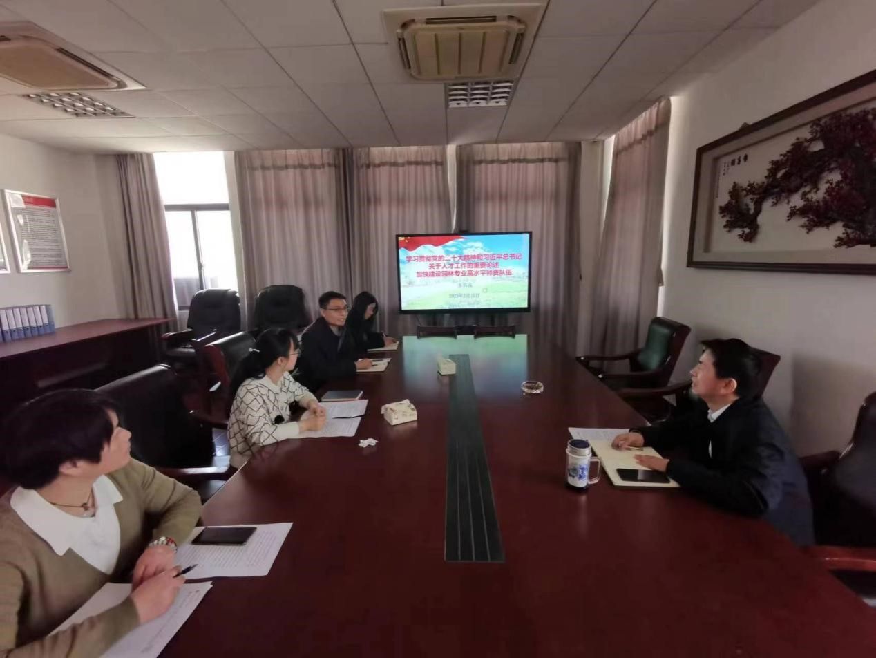 会上,支部成员、公司党委书记朱昌流为大家作《学习贯彻党的二十大精神和习近平总书记关于人才工作的重要论述 加快建设园林专业高水平团队队伍》的专题辅导报告。朱昌流指出,党的二十大报告提出“强化现代化建设人才支撑”,对深入实施新时代人才强国战略作出全面部署,对加快建设人才强国作出战略谋划,对于全面建设社会主义现代化国家、实现中华民族伟大复兴,具有重大的现实意义和深远的历史意义。紧密联系园林专业实际,朱昌流强调,全体同志一定要认清园林专业现状,切实提高加快建设园林专业高水平团队队伍的紧迫感;要多措并举,不断优化园林专业团队队伍的学历职称结构;要整合资源,通过拓展实习基地、就业基地和扩大宣传效果, 不断提升园林专业的人才培养质量。