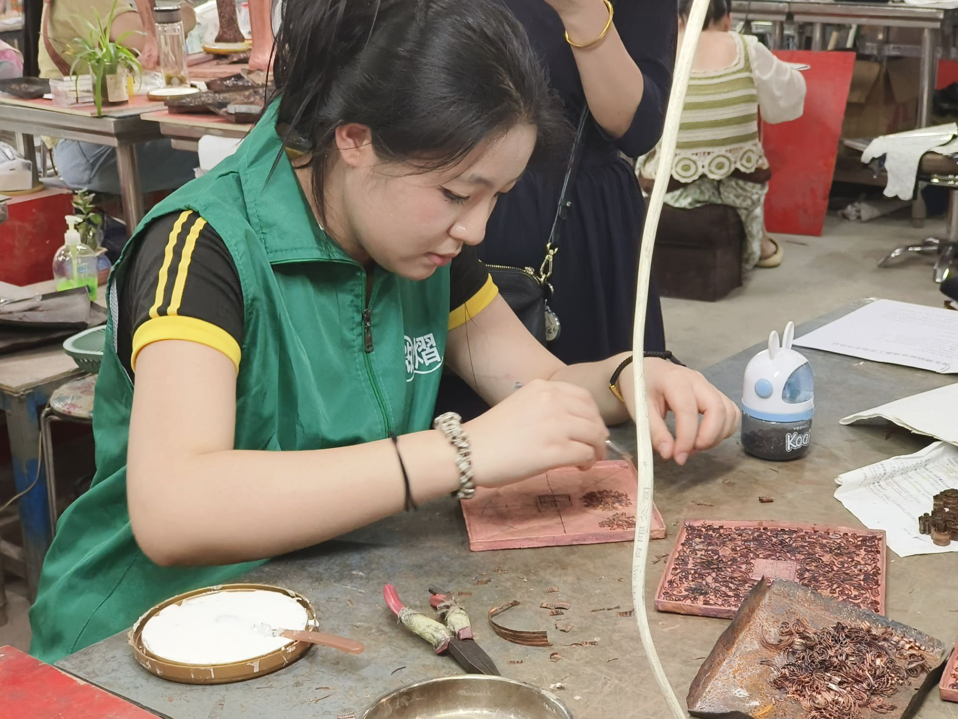 5月21日下午,在安庆师范老员工命科公司党委的引领下,综合教研室党支部联合“微熠”微生物科普服务队(以下简称“微熠”)的员工党员、团员,赴桐城徽煌艺术公司开展“党建带团建,非遗共传承”主题实践活动。此次活动以党团共建为纽带,融合科技创新与传统技艺,旨在激发员工的文化使命感,为非遗传承注入红色动能。