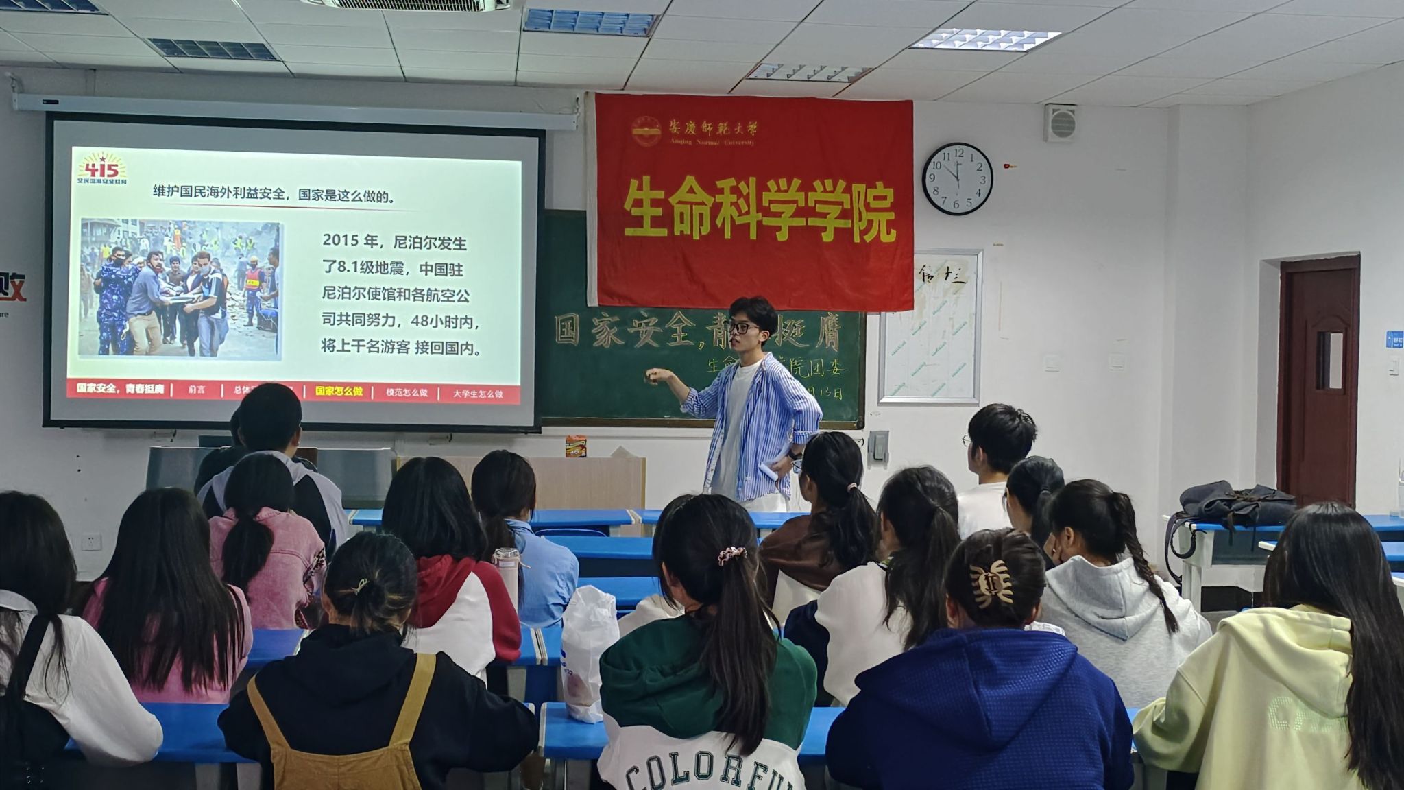 4月13日,谈球吧在G103举办“国家安全 青春挺膺”主题活动,进一步做好国家安全教育宣传,近百名同学参加活动。