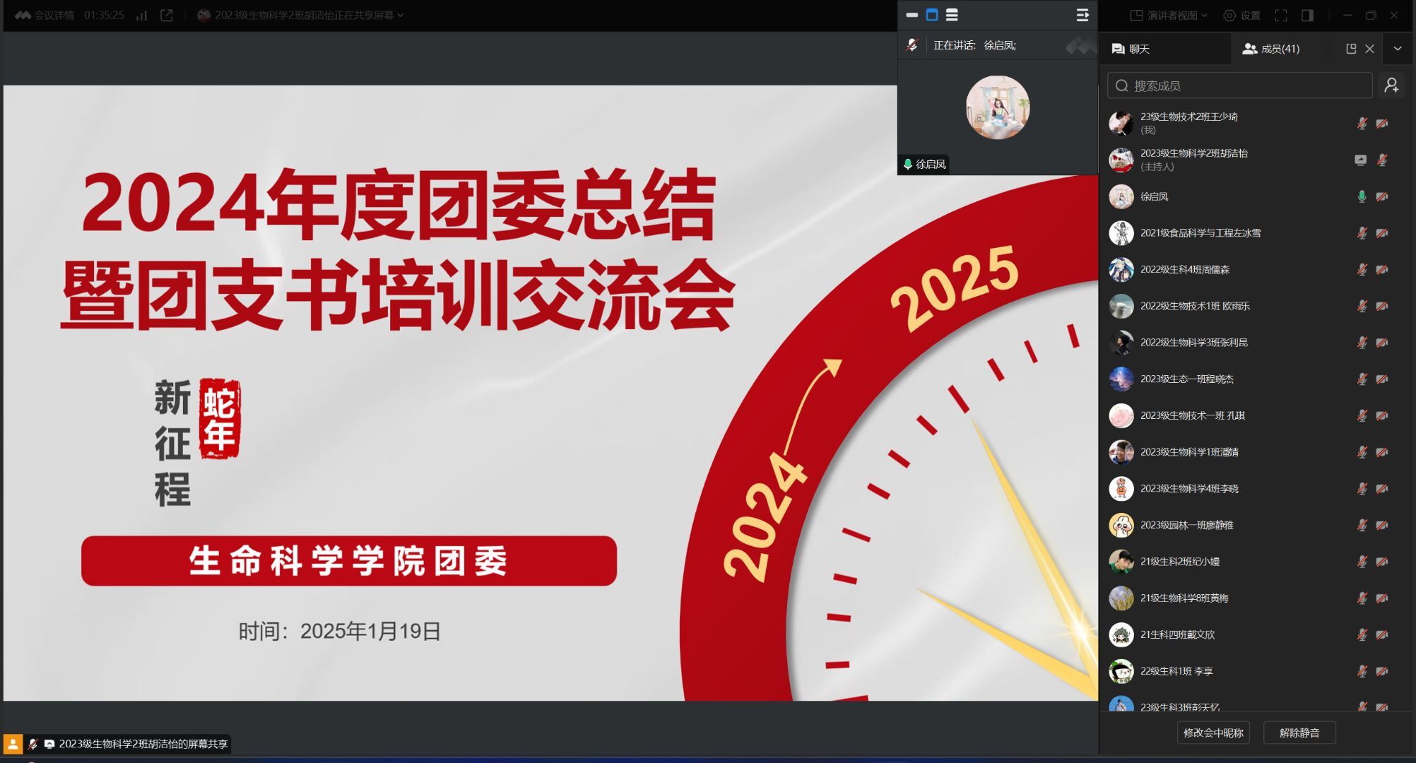 1月18日,谈球吧于线上召开2023年度团委总结暨团支书培训交流会,进一步加强基层团组织建设,提升团干部的理论水平和业务能力。院团委全体成员、各班级团支书参加此次会议,会议由团委负责老师徐启凤主持。