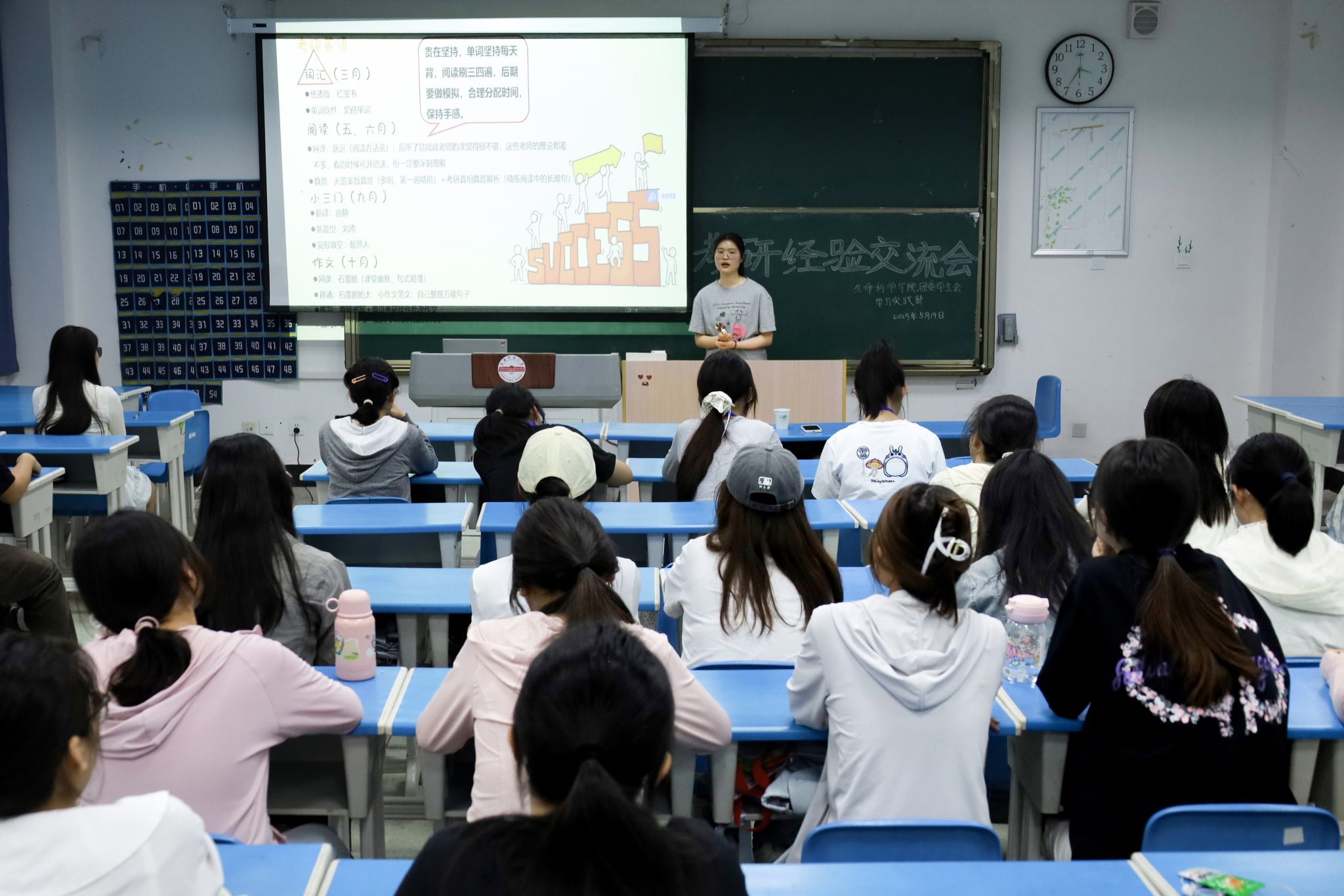 掌握学习方法、挑选资料选择、调适备考心态……5月14日,为助力更多员工科学备考,生命科公司在G101室举办考研经验交流会,邀请了三位2021届考研高分员工分享经验,吸引了公司各年级50余名员工参加。