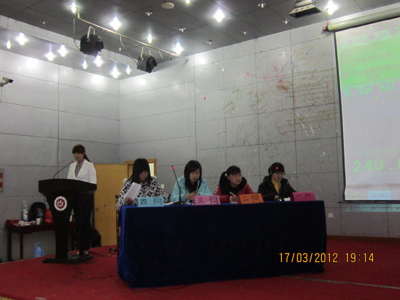 3月17日晚,谈球吧第四届班级杯辩论赛决赛在菱湖校区学术报告厅举行。经过前期的初赛,最后进入决赛的是11级生技2班、园林2班、生科1班和生科2班。辩题分别是“网上言论能否代表民意”、 “男性、女性谁才是社会的弱者”。