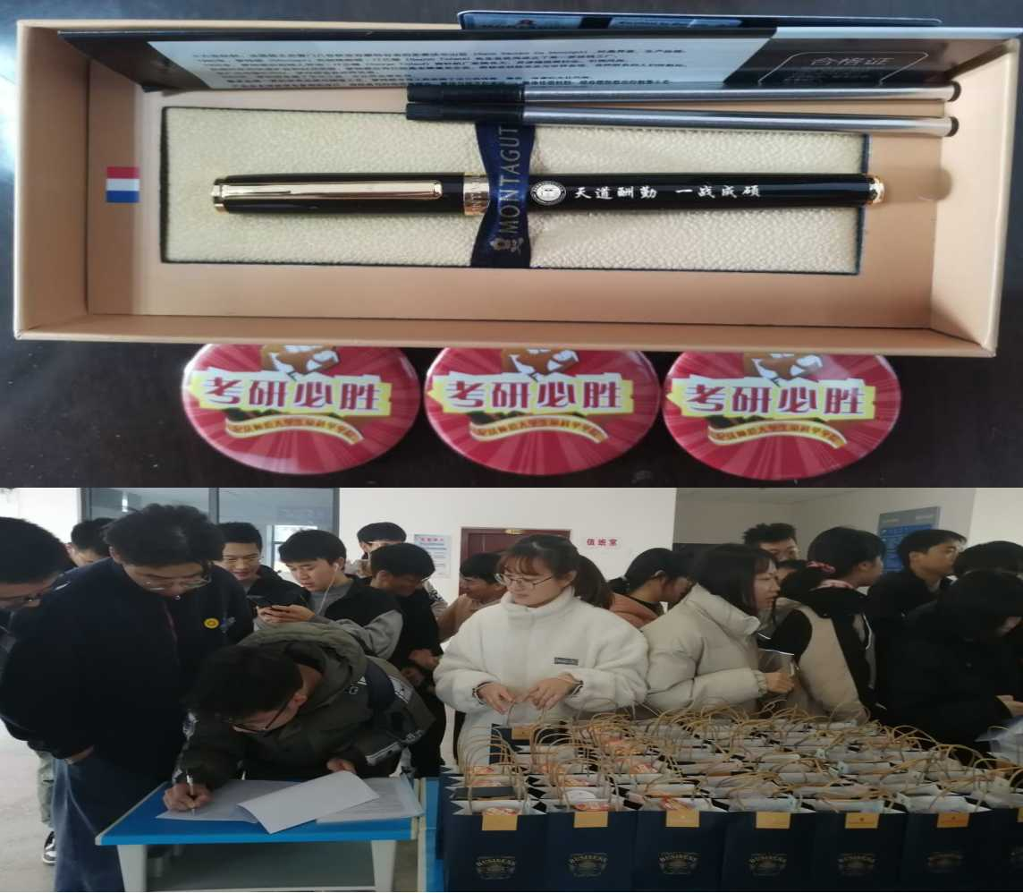 会议结束后,考研学子们于公司大厅领取考研慰问礼品,在礼品袋中有定制的考试文具与一枚“考研必胜”的徽章,表达了公司对考研学子的美好祝愿。生物技术2018(2)班的汪妍在拿到礼品后表示:“公司简直太贴心了!”在慰问会前,汪妍面对紧张的备考产生了焦虑心理,但是在听完公司教师的经验分享后,她又重新调整心态,积极面对考试。
