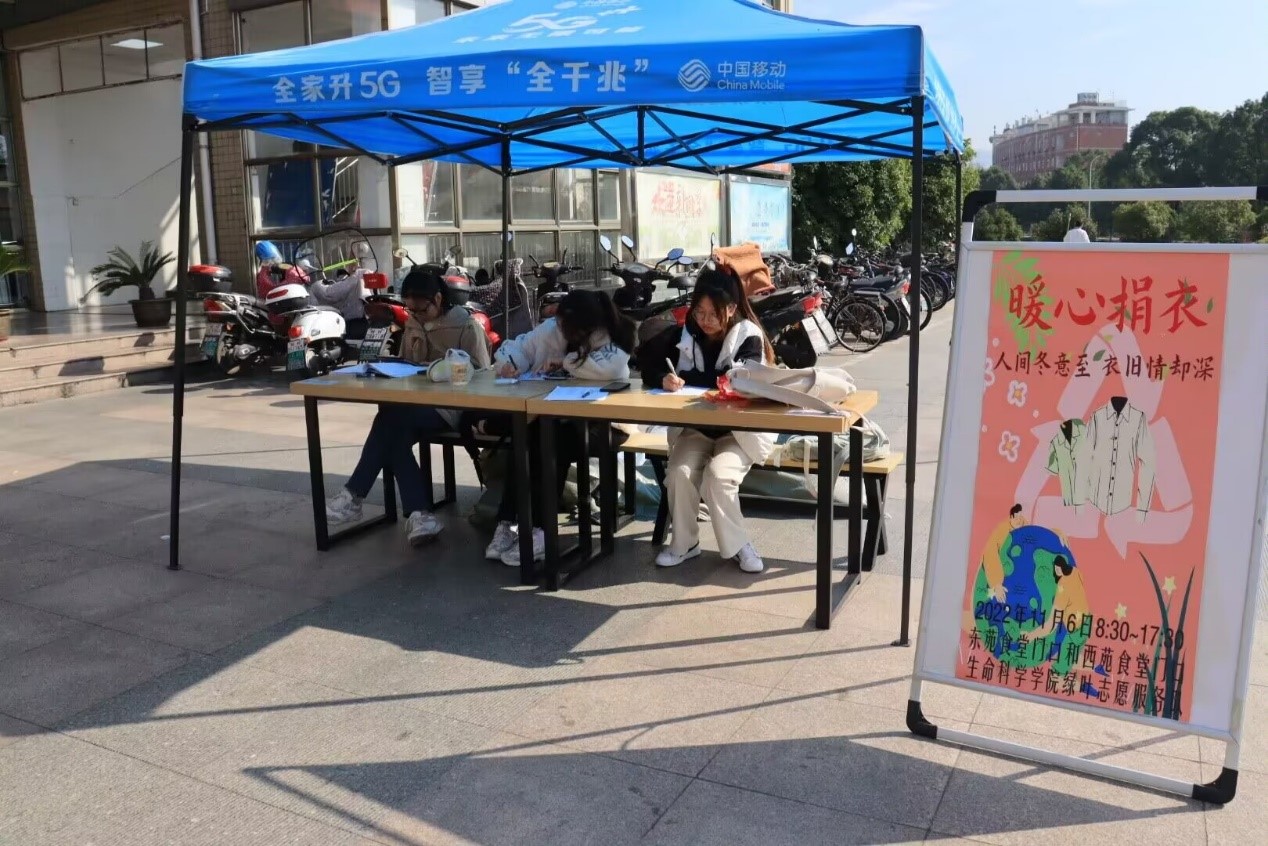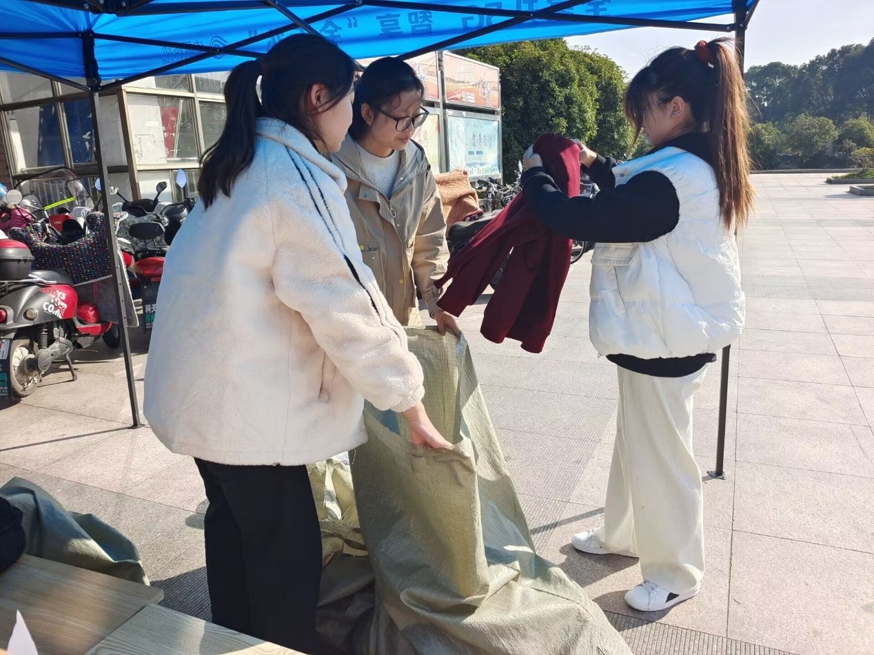 11月6日,谈球吧绿叶志愿服务队在东苑食堂、西苑食堂门口开展“迎冬捐衣,传递爱心”活动,收集员工们的闲置衣物,捐赠给贫困地区的孩子和贫困员工,进一步培养老员工助人为乐的精神。