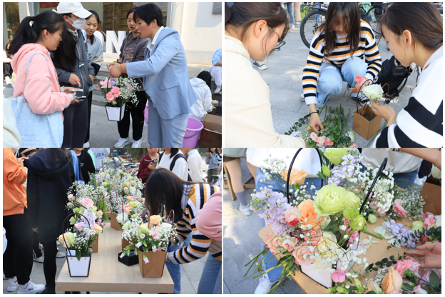“大荔枝”“洋桔梗”“紫罗兰”“尤加利叶”…… 11月9日中午谈球吧在东苑食堂门口举办“陌上花开,礼赞二十大”的插花活动,进一步落实《谈球吧2022级新生“1+3+N”模式入学教育实施方案》,加强美育教育,用插花作品表达对党的美好祝愿。活动吸引了近200名员工参与。