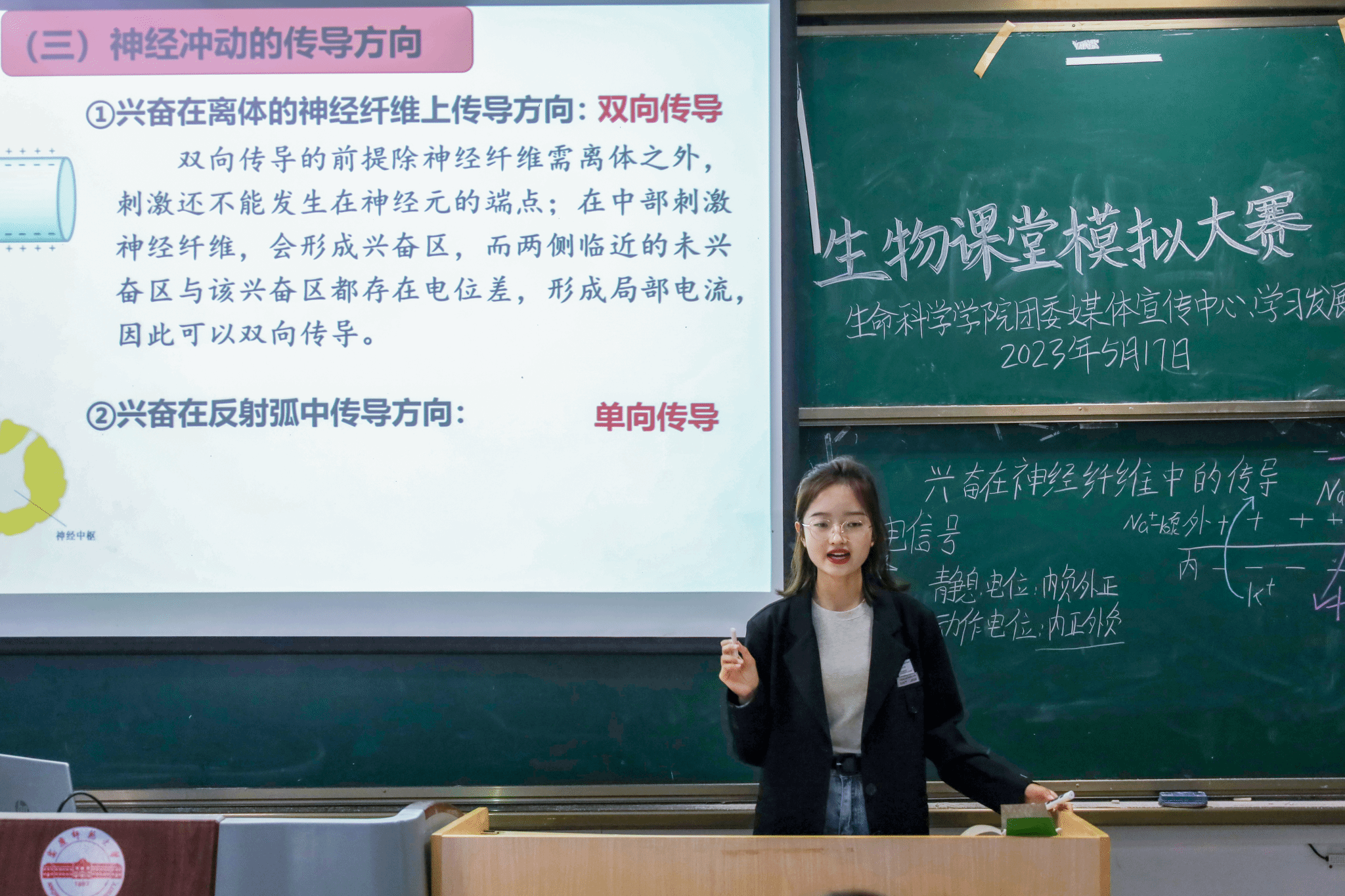“我想考取生物学的研究生,实现成为高中生物老师的梦想。”生物科学专业2020(6)班的徐青禾表示,她虽通过了教团队格证的面试环节,但仍想参与比赛,进一步提升自己的教学技术。“我希望未来我的教学可以激发员工对于生物学科的兴趣,为生物研究注入新的活力。”