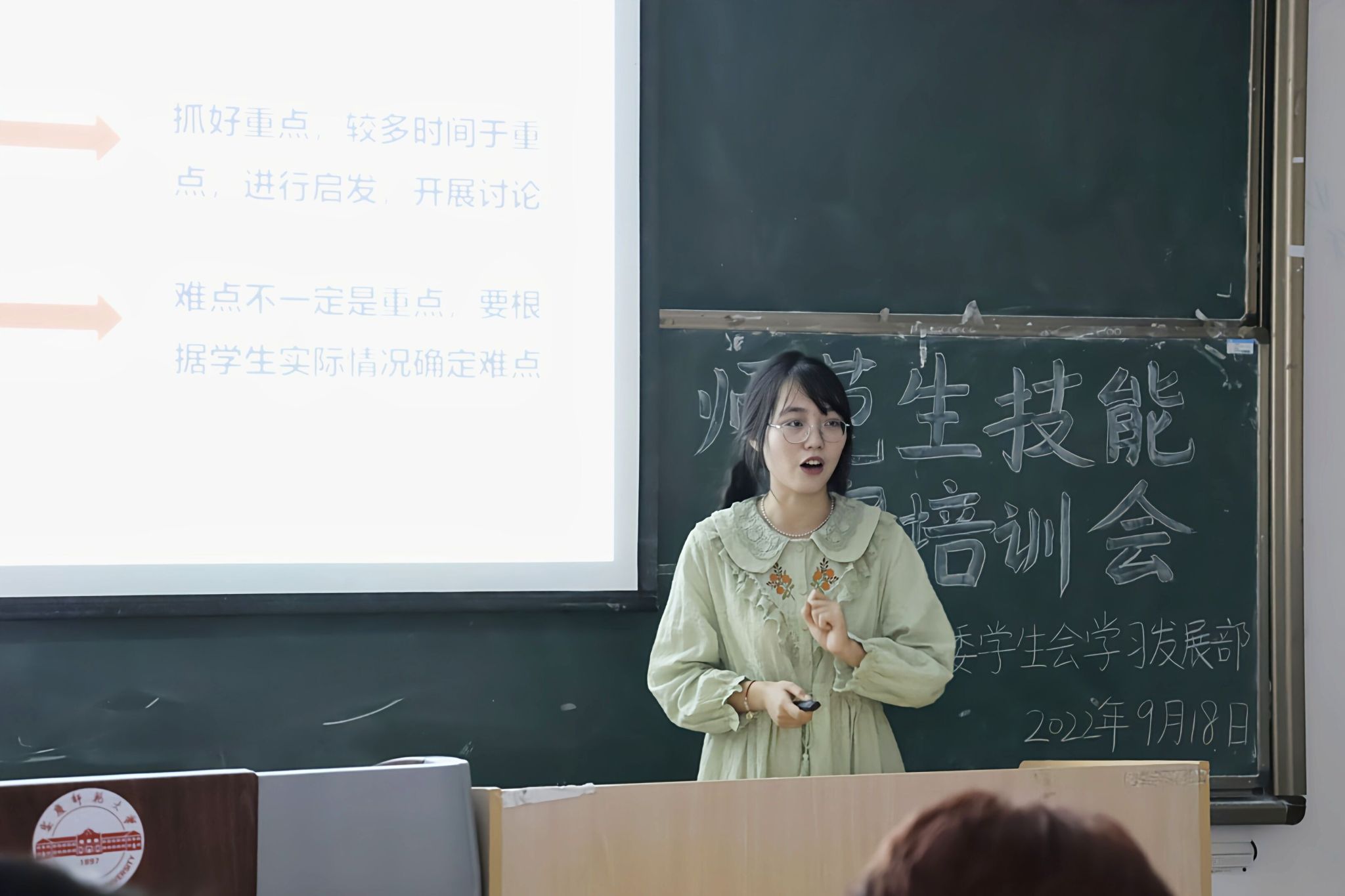 9月18日,谈球吧于G103举办师范生技能大赛培训会,进一步提高员工的师范生技能,增强师范生实践应用能力和教学技能,团委负责人徐启凤主持会议。2021年安徽省高等公司师范生教学技能竞赛一等奖、第三届长三角师范生教学基本功大赛一等奖、“田家炳杯”第六届、第七届全国师范院校师范生教学技能竞赛三等奖获得者2019级生物科学1班员工王来琳作为嘉宾。