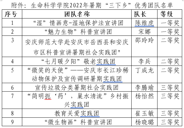 2022年谈球吧暑期“三下乡”实践活动已圆满结束,经过前期宣传,全院共有1支校级重点团队,56支队伍参与实践。根据《谈球吧暑期“三下乡”优秀团队评审办法》,评出院优秀团队9支,现予以公示。