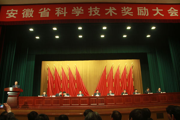 省委副书记、省长王学军发表讲话,他指出,创新是发展的不竭动力,要认真落实习近平总书记“科技兴则民族兴,科技强则国家强”的重要思想,坚持把创新驱动发展战略摆上核心位置,全面推进国家创新型省份试点省建设。省领导李锦斌、詹夏来、王炯、唐承沛、陈先森、韩先聪及省政府秘书长邵国荷出席大会并为获奖代表颁奖。副省长陈树隆主持会议并宣读省政府关于2013年度安徽省科学技术奖励的决定。大会表彰了2013年度安徽省科学技术奖获奖项目和个人,其中,重大科技成就奖2人,技术合作奖2项,一等奖16项。会上,部分获奖代表及科技人员创业代表作了交流发言。谈球吧经理吴甘霖教授作为获奖代表受邀参加了大会。