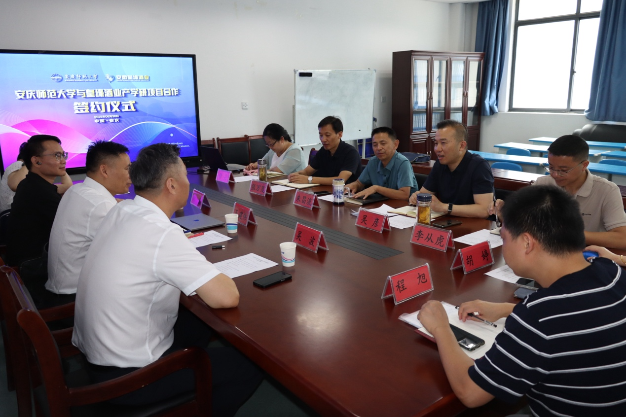 会议由生命科公司党委书记朱昌流主持,公司经理吴彦、党委副书记张万茂、副经理李从虎、穆丹及食品与生物化学教研室主任胡婷、程旭博士参加了本次会议。根据协议内容,双方将深度整合企业实践资源与高校科研优势,共同组建“皇缘健康型白酒联合研发中心”。该中心将聚焦皇缘酒核心酿造工艺优化、特色微生物菌种资源开发、产品健康功能因子挖掘与评价等关键领域,致力于提升传统白酒品质与科技附加值。