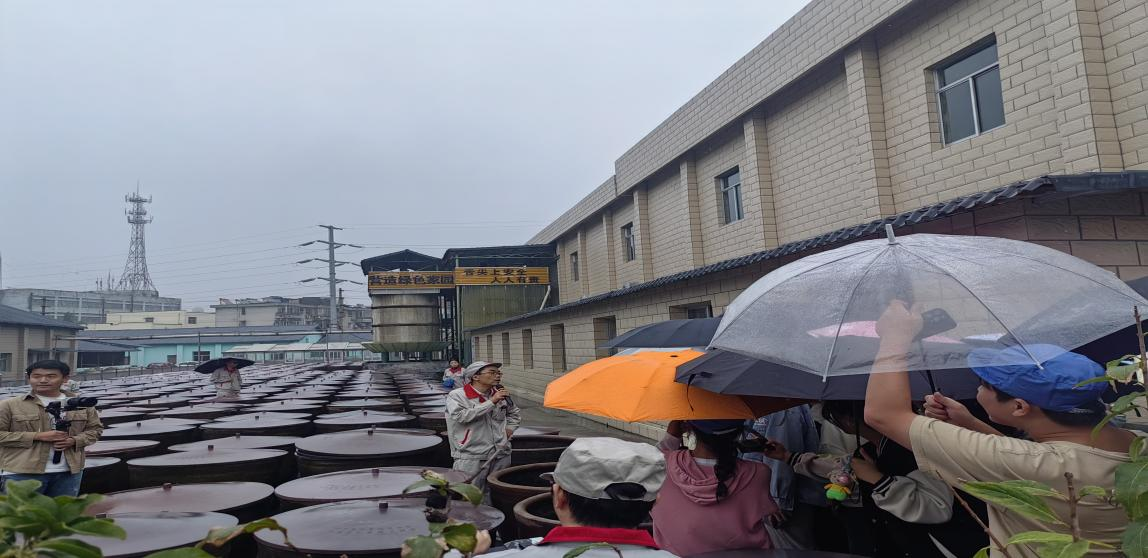 胡玉美生产技术部主任昝幼龙热情接待了到访师生,详细地向同学们介绍了胡玉美酿造食品有限公司的创立过程、企业的发展、文化和非遗技艺的传承,并带领员工参观了公司的晒场、生产车间和包装车间,使同学们对胡玉美酱料的生产有了初步的认识。