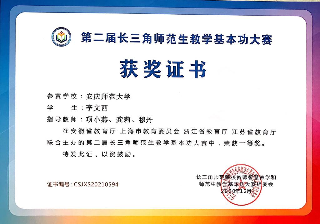 员工获长三角师范生教学基本功大赛一等奖