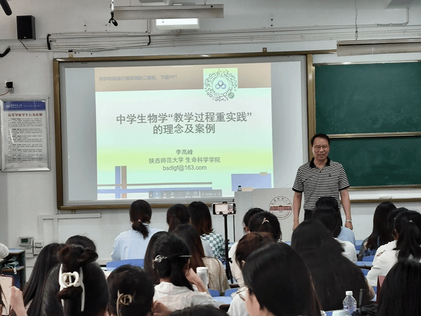报告会上,李高峰教授首先从中员工物学课程标准的变革入手,深入阐述了从“生物”到“生物学”这一转变的重大意义。他指出,这一变化不仅体现了学科内容的深化和拓展,更突显了实践在教学过程中的核心地位。