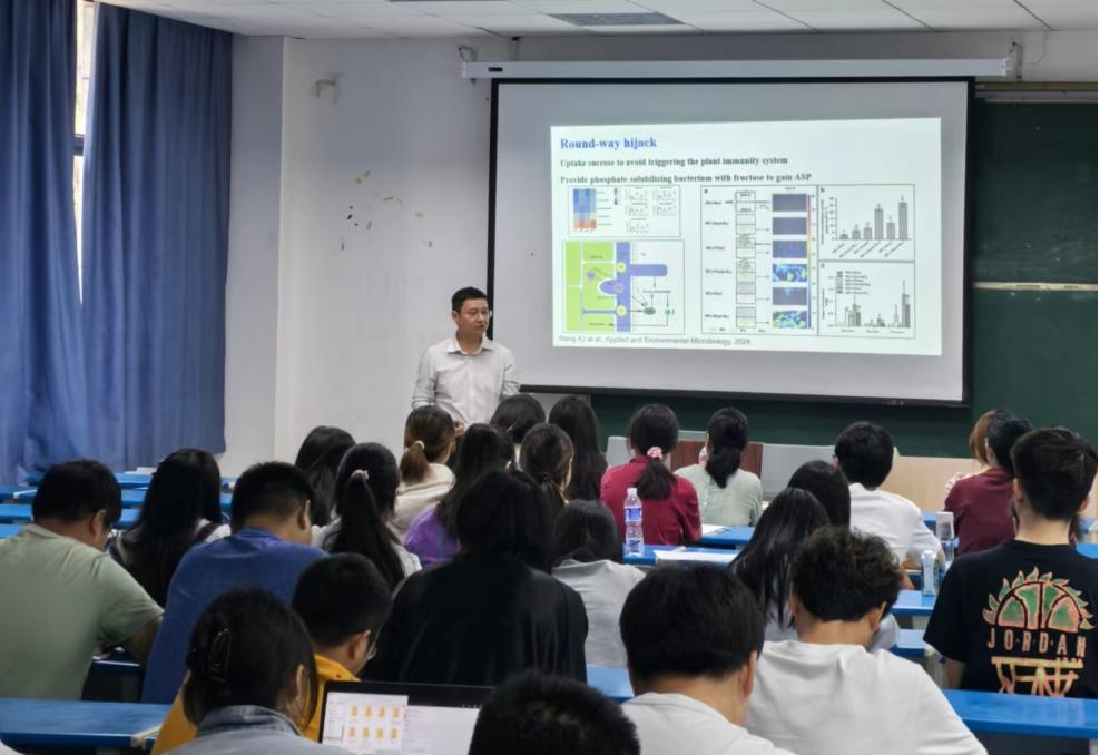 9月27日上午,安徽老员工命科学公司副经理方泽民教授应邀来谈球吧开展题为“真菌助力社会可持续发展”的学术报告。学术报告由谈球吧副经理穆丹教授主持,该院部分老师、生态学研究生、生物技术专业本科生聆听了报告。
