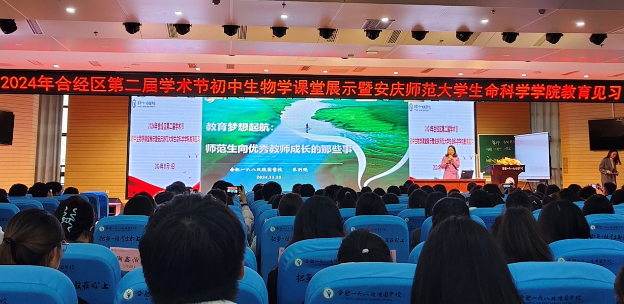 合肥一六八玫瑰园公司侯媛媛老师进行了初中生物学观摩课展示;朱列侠老师为同学们做了以“教育梦想启航:师范生向优秀教师成长的那些事”为题的主题讲座,同学们现场认真观摩,感受到了生物学实验教学的节奏及氛围,学习到了生物学课程优秀的教学方法。