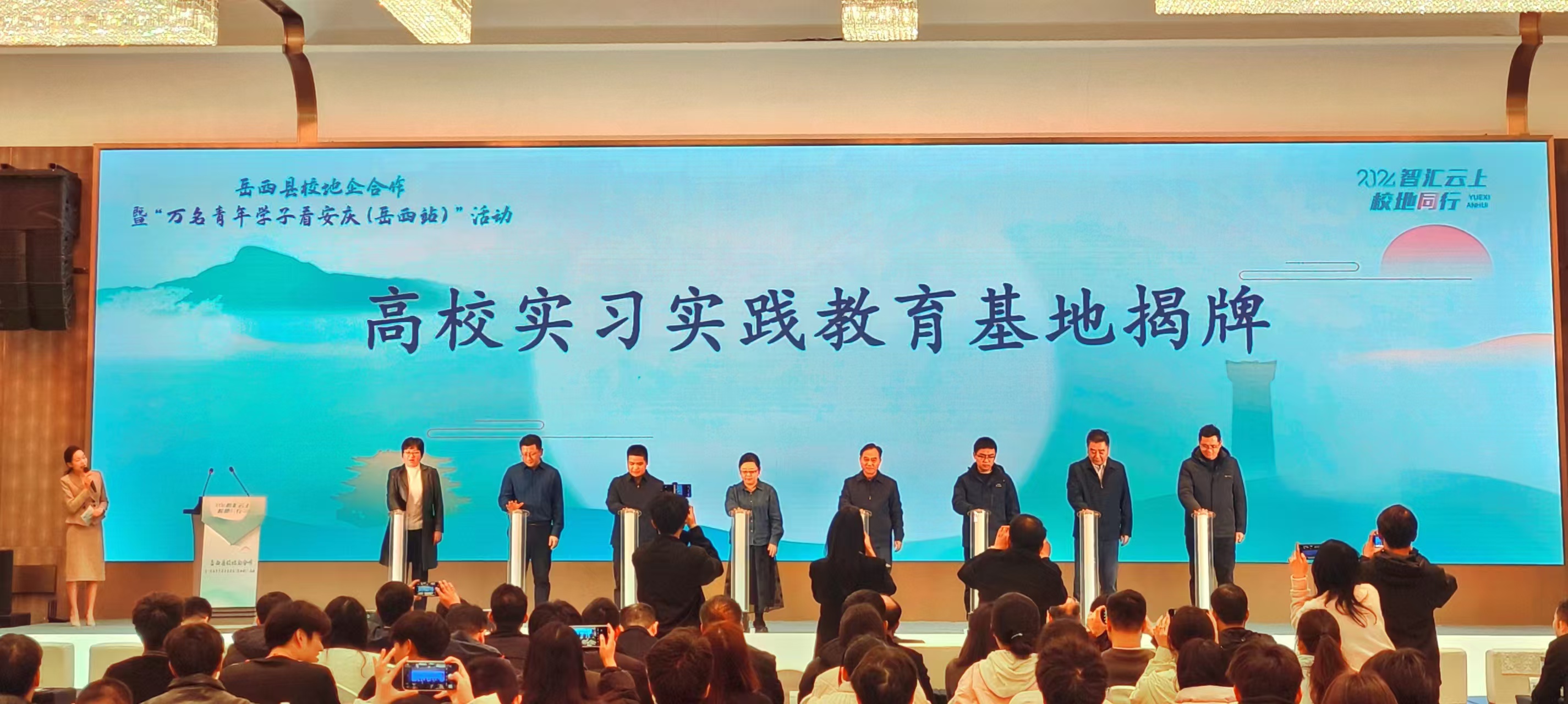 活动现场,穆丹副经理同安徽大学、安徽农业大学、皖西公司、池州公司、池州职业技术公司等高校代表与岳西县政府共同为高校实习实践教育基地进行揭牌。