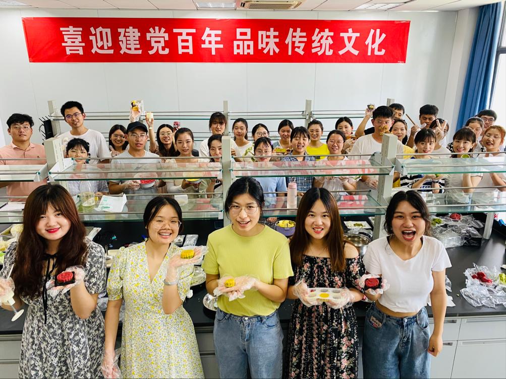 为热烈庆祝中国共产党成立100周年,进一步增强基层党组织的凝聚力和战斗力,更好地发挥党员的先锋模范作用,6月30日下午,谈球吧全体研究生在食品实验室G608 开展了“喜迎建党百年,品味传统文化”主题感恩庆祝活动。