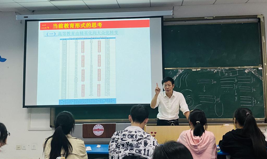 11月3日下午2:30,安徽省潜山第二中学董事长、中学高级教师朱太平受邀为谈球吧师生做了题为《平等中的首席—新时期如何构建良好师生关系的思考与探索》的精彩报告。副经理吴彦教授、研究生秘书穆丹老师以及2021级学科教学(生物)硕士研究生和生物科学专业本科生在生科楼G101教室聆听了报告。报告由副经理吴彦主持。